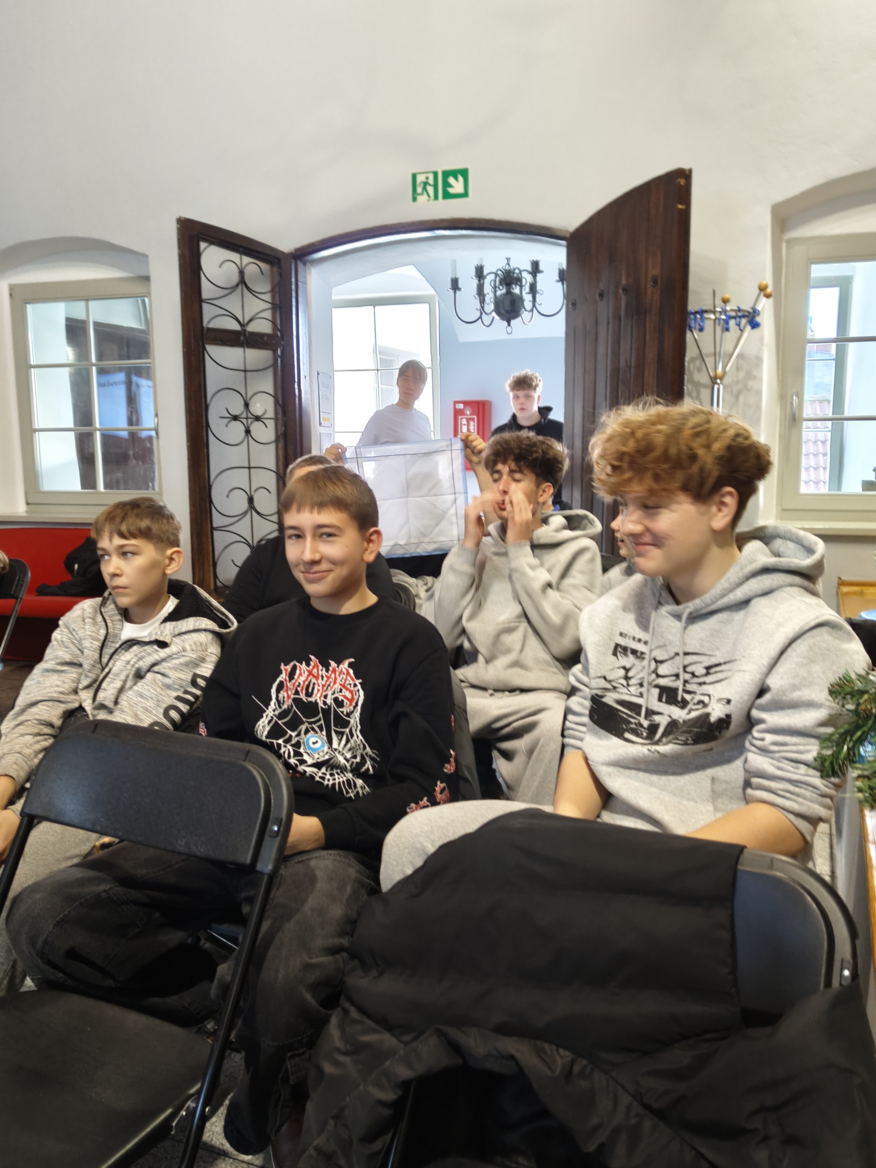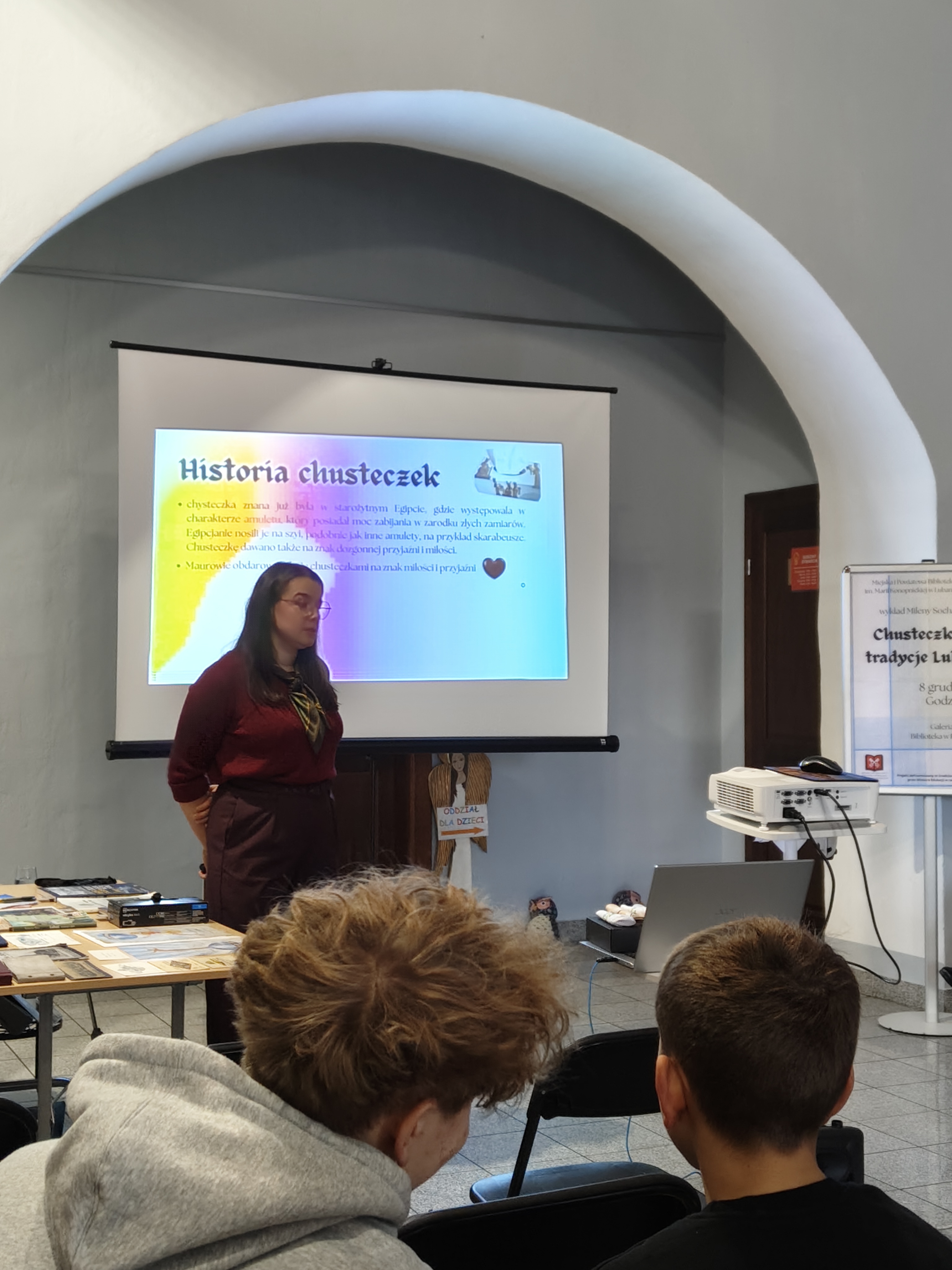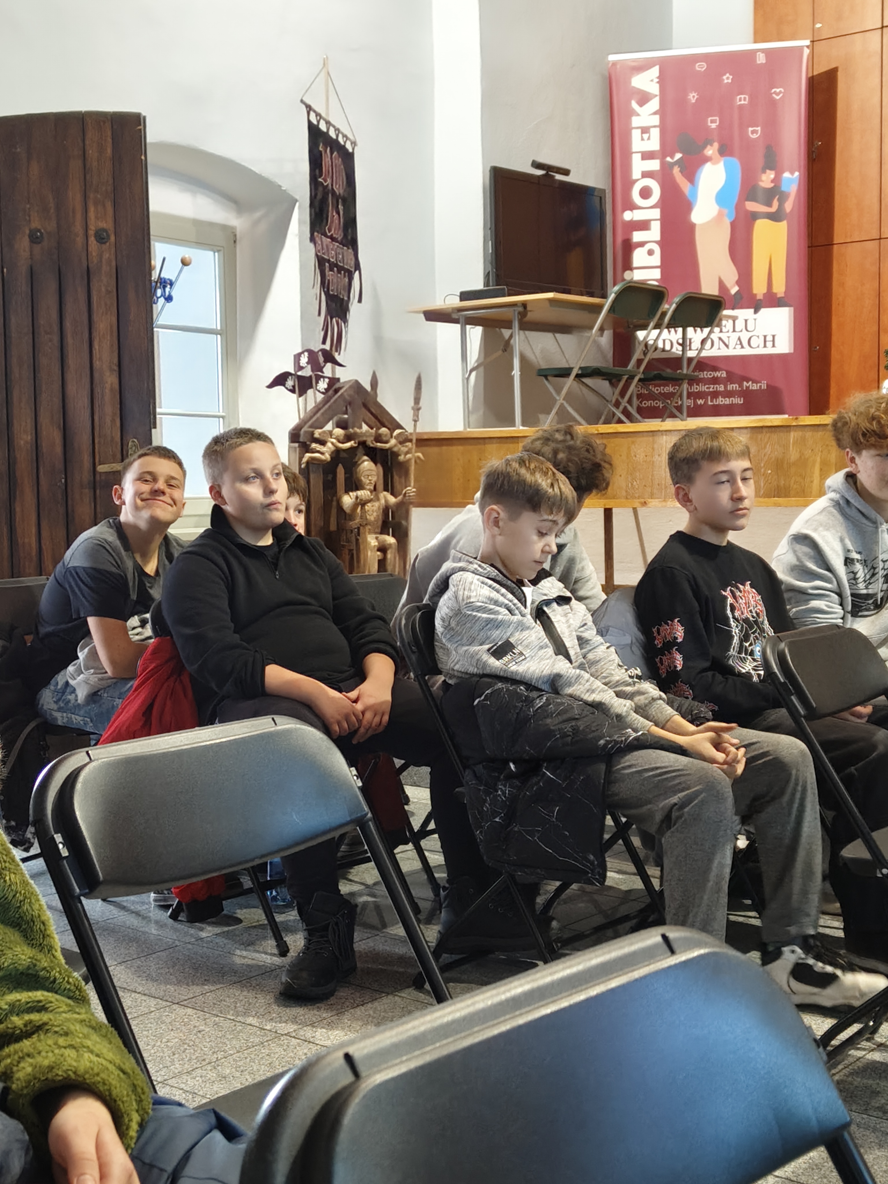 Dnia 8 grudnia uczniowie klasy 7a uczestniczyli w niezwykle ciekawym wykładzie zatytułowanym „Chusteczki lubańskie”, zorganizowanym w Miejskiej i Powiatowej Bibliotece Publicznej w Lubaniu. Spotkanie poświęcone było historii słynnych lubańskich chusteczek, które przez wiele dziesięcioleci stanowiły jeden z najważniejszych symboli przemysłowych regionu.