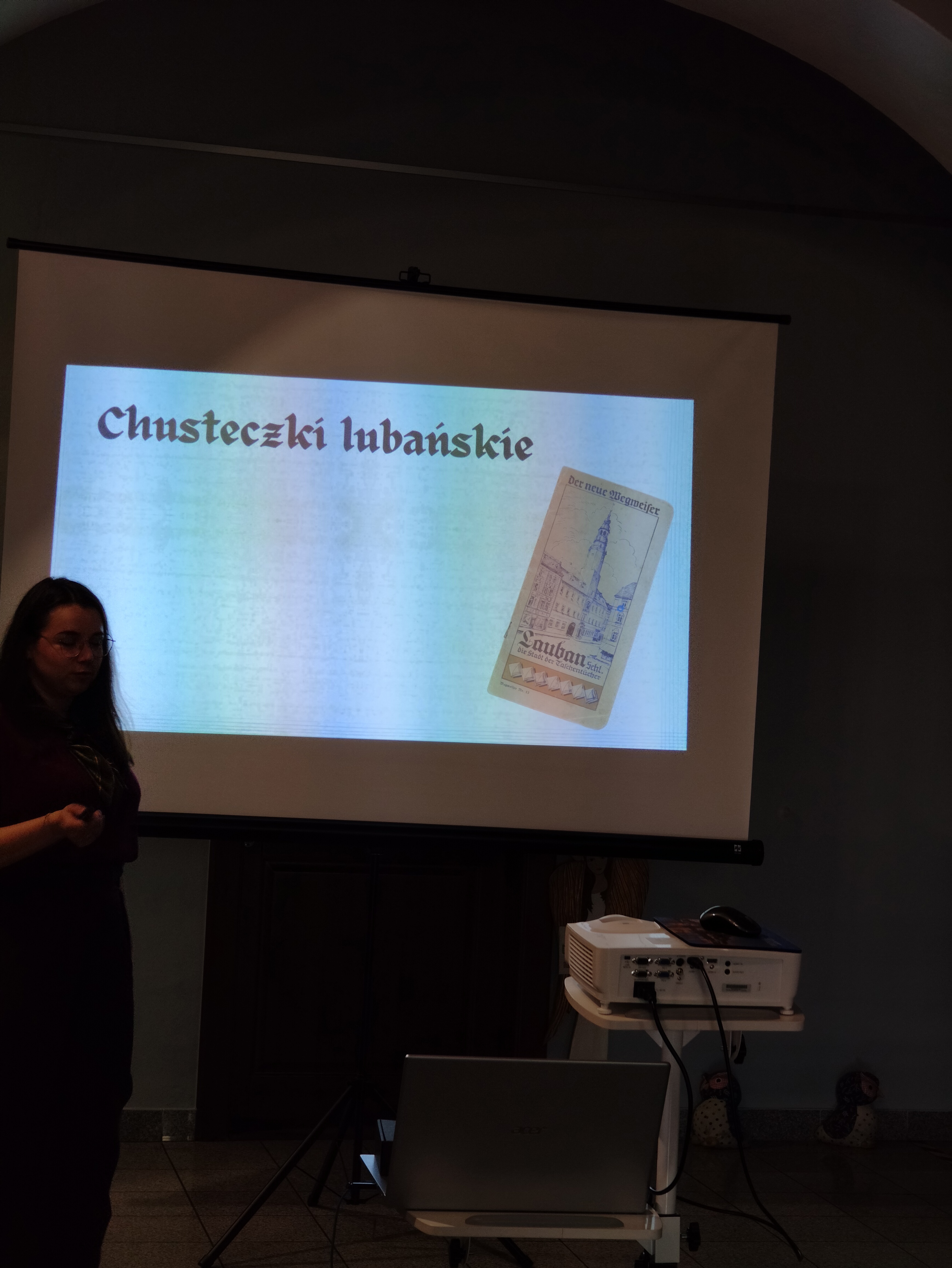 Podczas wykładu uczniowie poznali dzieje lokalnego włókiennictwa, rozwijającego się w Lubaniu już od XVII i XVIII wieku. Dowiedzieli się, że na przełomie XIX i XX wieku miasto stało się jednym z najważniejszych ośrodków produkcji chusteczek w Europie. W latach trzydziestych XX wieku działało tu aż 35 fabryk chusteczkowych, a w najlepszym okresie produkowano nawet 3 miliony chusteczek tygodniowo. Aż 95% chusteczek sprzedawanych na terenie ówczesnych Niemiec pochodziło z Lubania, co przyniosło mu miano „miasta chusteczek do nosa”.