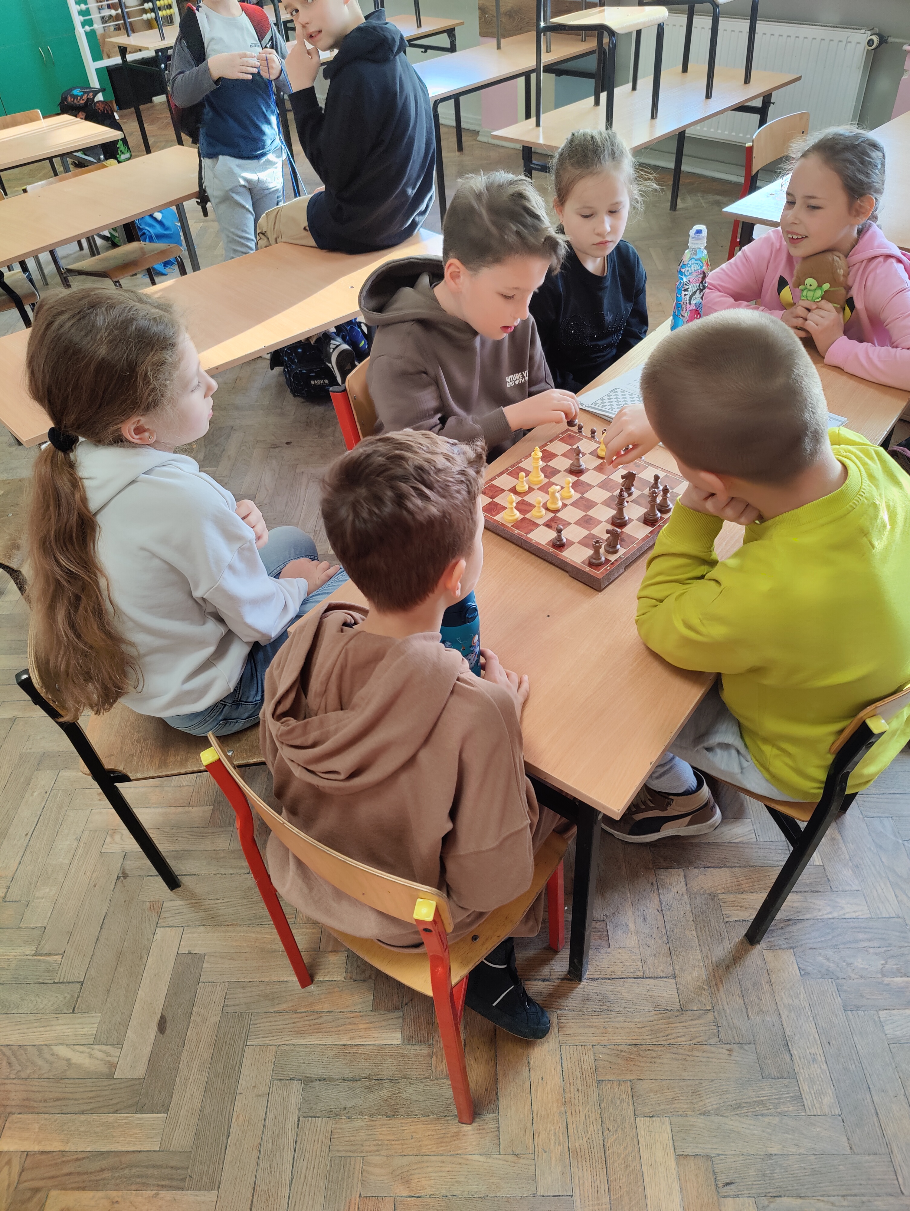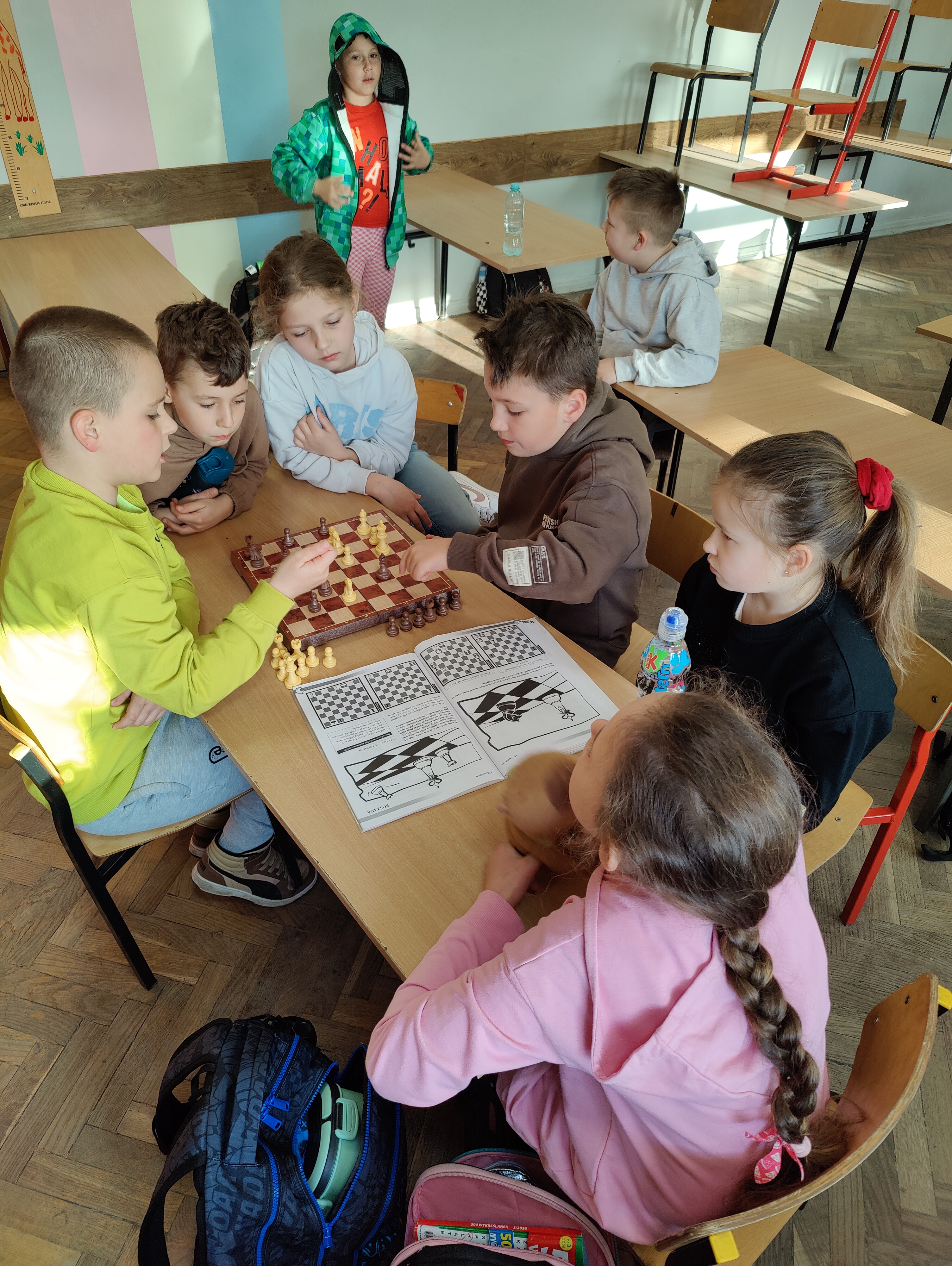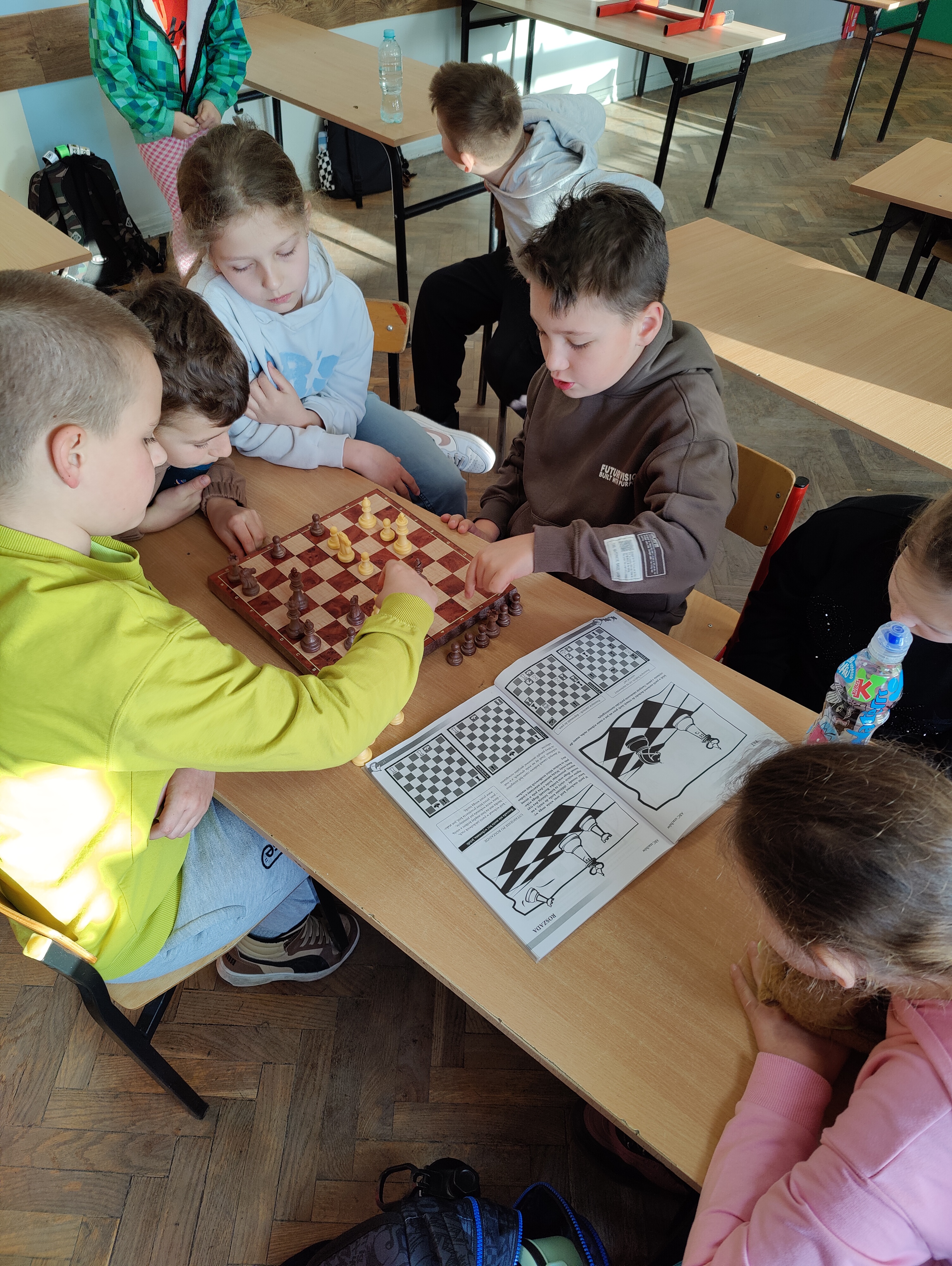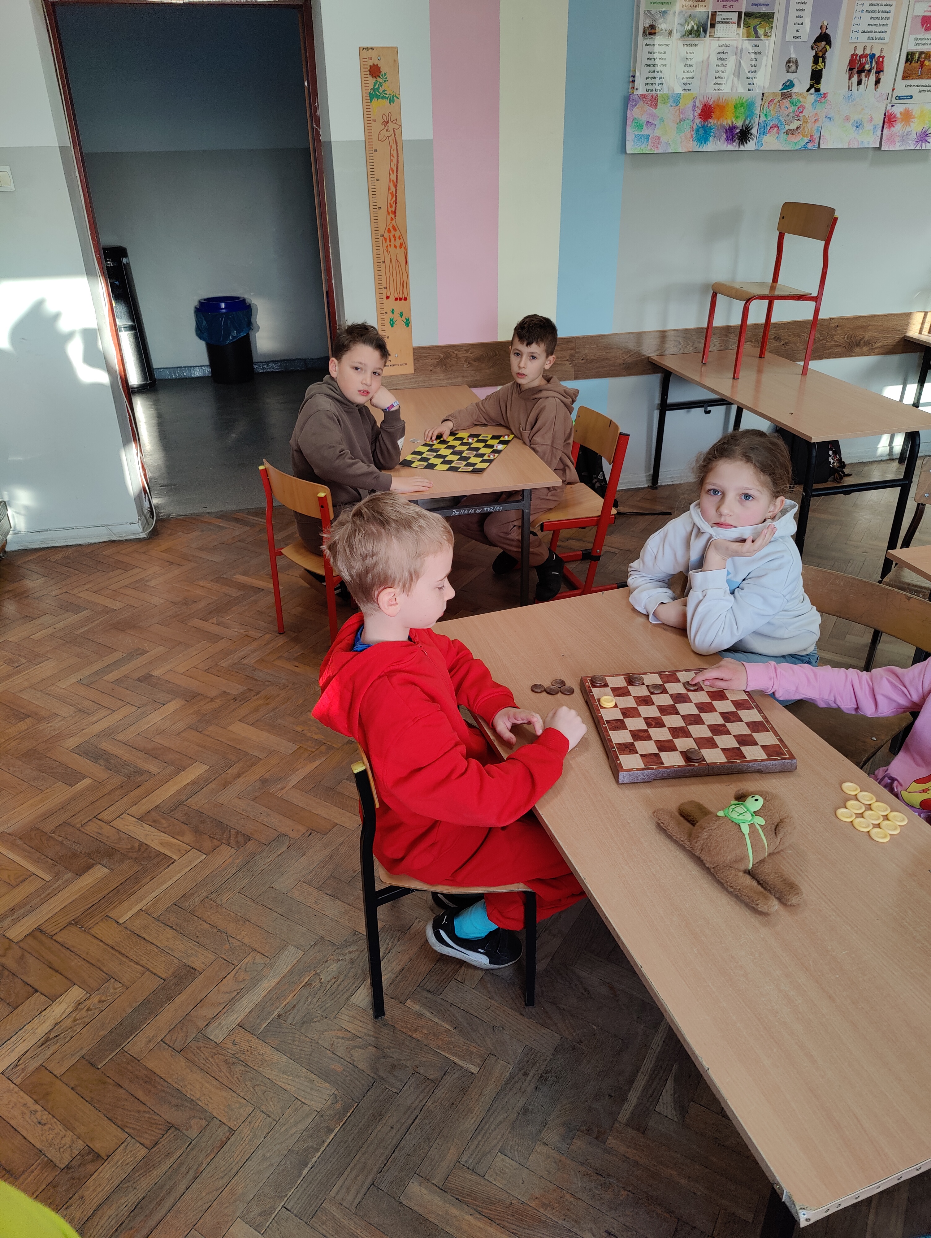 Zanim zadzwoni pierwszy dzwonek, w naszej szkolnej świetlicy rannych ptaszków słychać... skupienie i stukot przesuwanych pionków. Uczniowie z zapałem zgłębiają tajniki gry w szachy i warcaby. To nie tylko świetna zabawa, ale też doskonały trening logicznego myślenia, cierpliwości i planowania. Jak widać na zdjęciach, młodzi mistrzowie strategii z SP4 nie próżnują od samego rana!