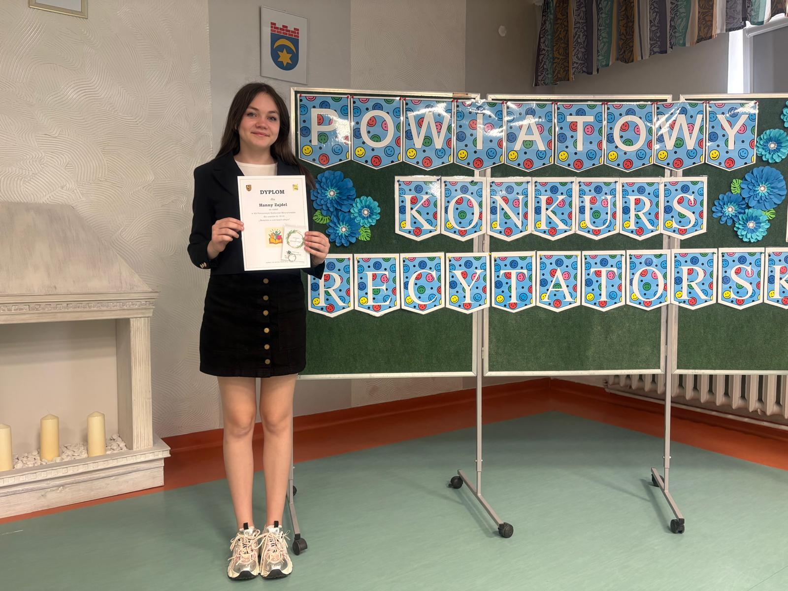 Z radością informujemy, że uczennica naszej szkoły Hanna Zajdel wspaniale zaprezentowała swój talent i wrażliwość na słowo w interpretacji utworu Wisławy Szymborskiej pt. „ Miłość szczęśliwa” podczas tegorocznego Powiatowego Konkursu Recytatorskiego. Dzięki pracy włożonej w przygotowanie występu, nasza reprezentantka zajęła II miejsce. Jesteśmy dumni z Jej zaangażowania i odwagi scenicznej! ?