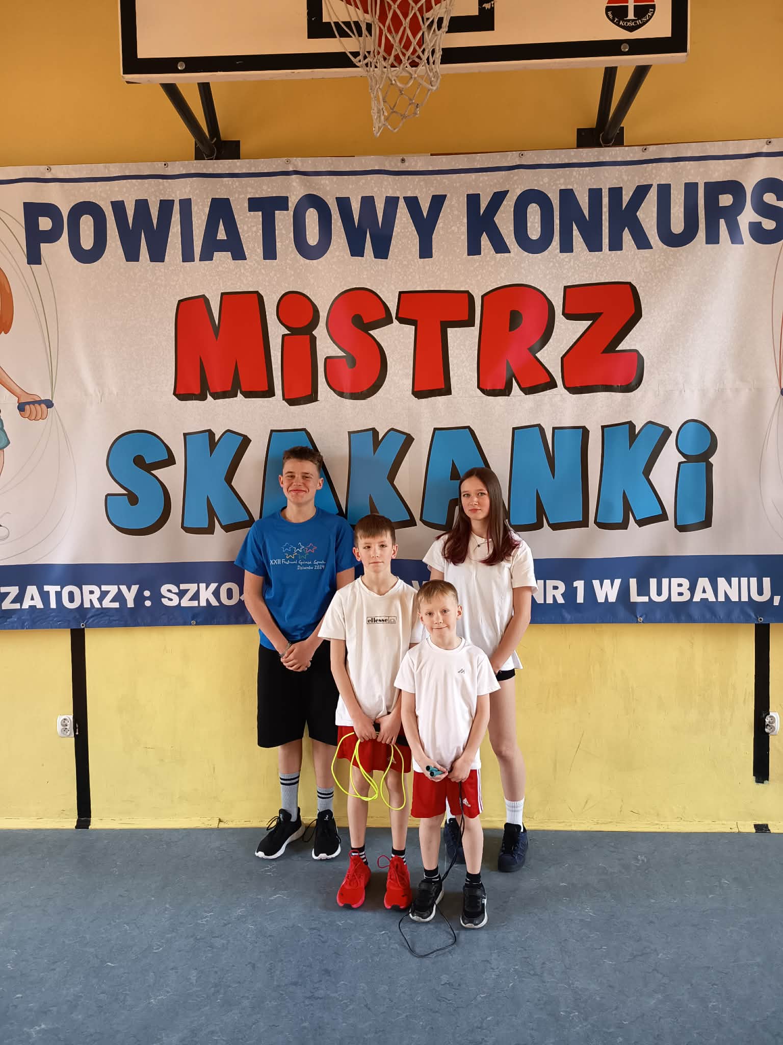 Dnia 24 marca 2026 r. w Szkole Podstawowej nr 1 w Lubaniu odbył się Powiatowy Konkurs Sportowy "Mistrz Skakanki". Konkurs był przeznaczony dla uczniów klas I-III oraz IV-VIII. Celem rywalizacji było wykonanie jak największej liczby skoków na skakance w ciągu jednej minuty. Uczestnicy mieli do wykorzystania trzy próby, a najlepszy wynik liczył się do klasyfikacji. Naszą szkołę reprezentowali uczniowie: