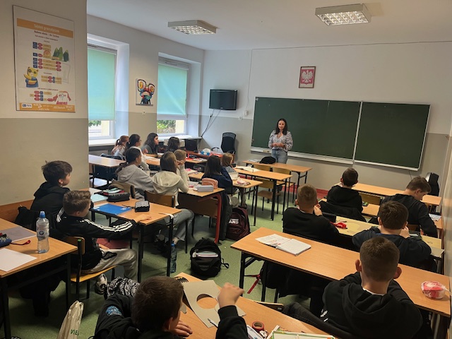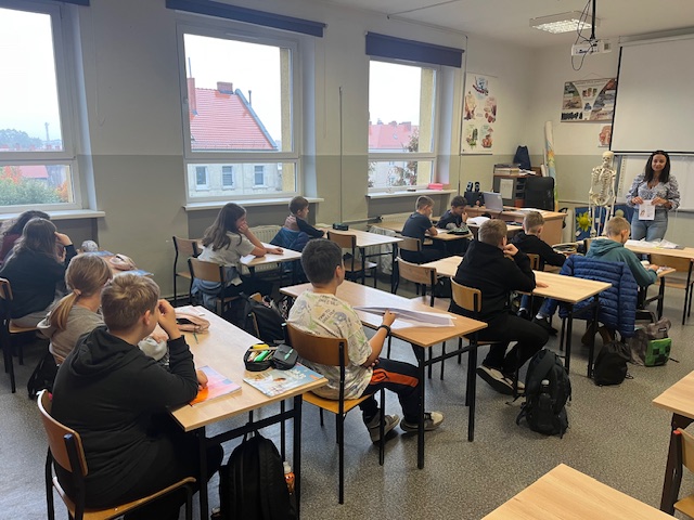 W dniu 09.10.2025r naszą szkołę odwiedzili przedstawiciele Powiatowej Stacji Sanitarno-Epidemiologicznej w Lubaniu – Pani Agata Śmigiel, asystent oświaty zdrowotnej i promocji zdrowia, oraz Pan Zbigniew Kołodziejski, specjalista ds. higieny dzieci i młodzieży.