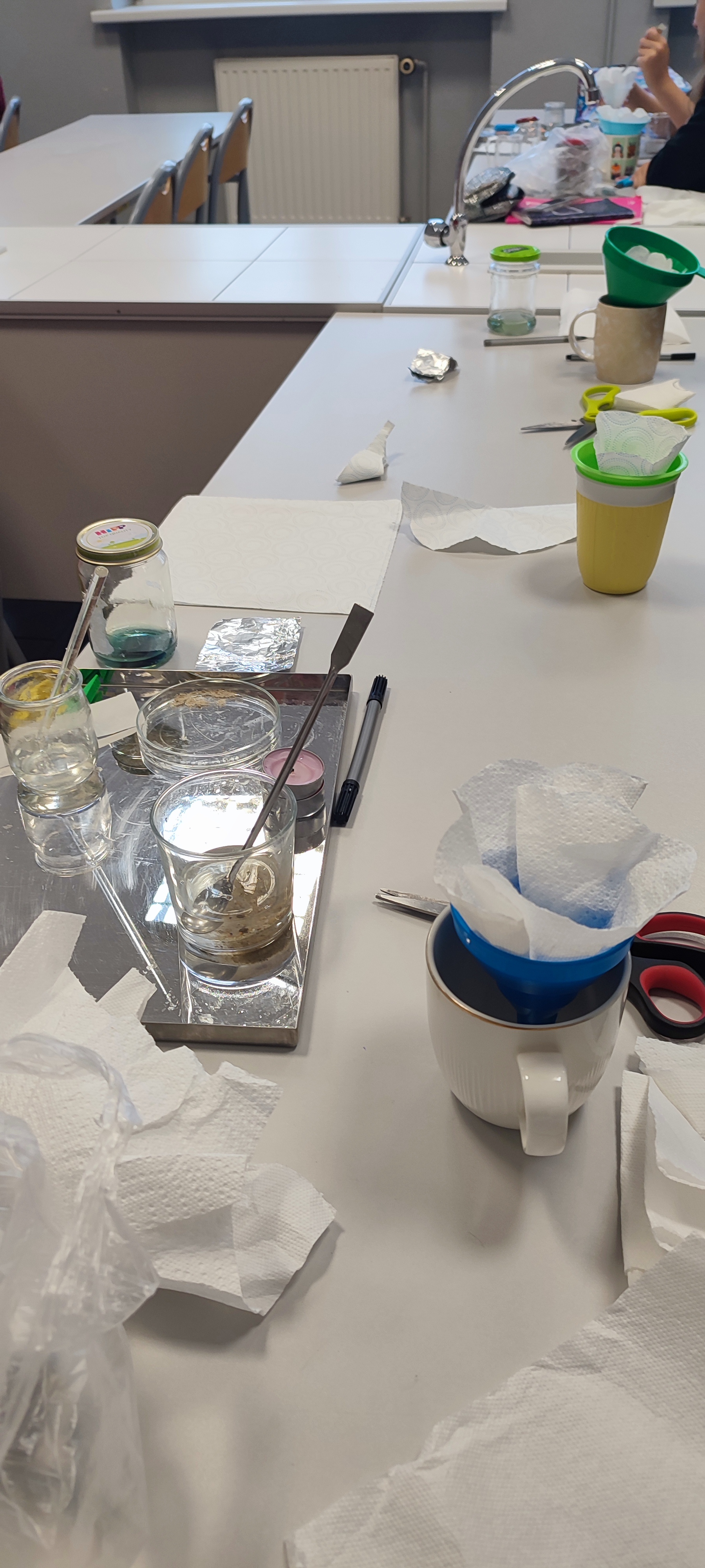 Po wstępie teoretycznym uczniowie przeszli do praktyki. Przygotowywali mieszaniny, a także je rozdzielali. Przeprowadzali chromatografię, odparowanie oraz filtrację.