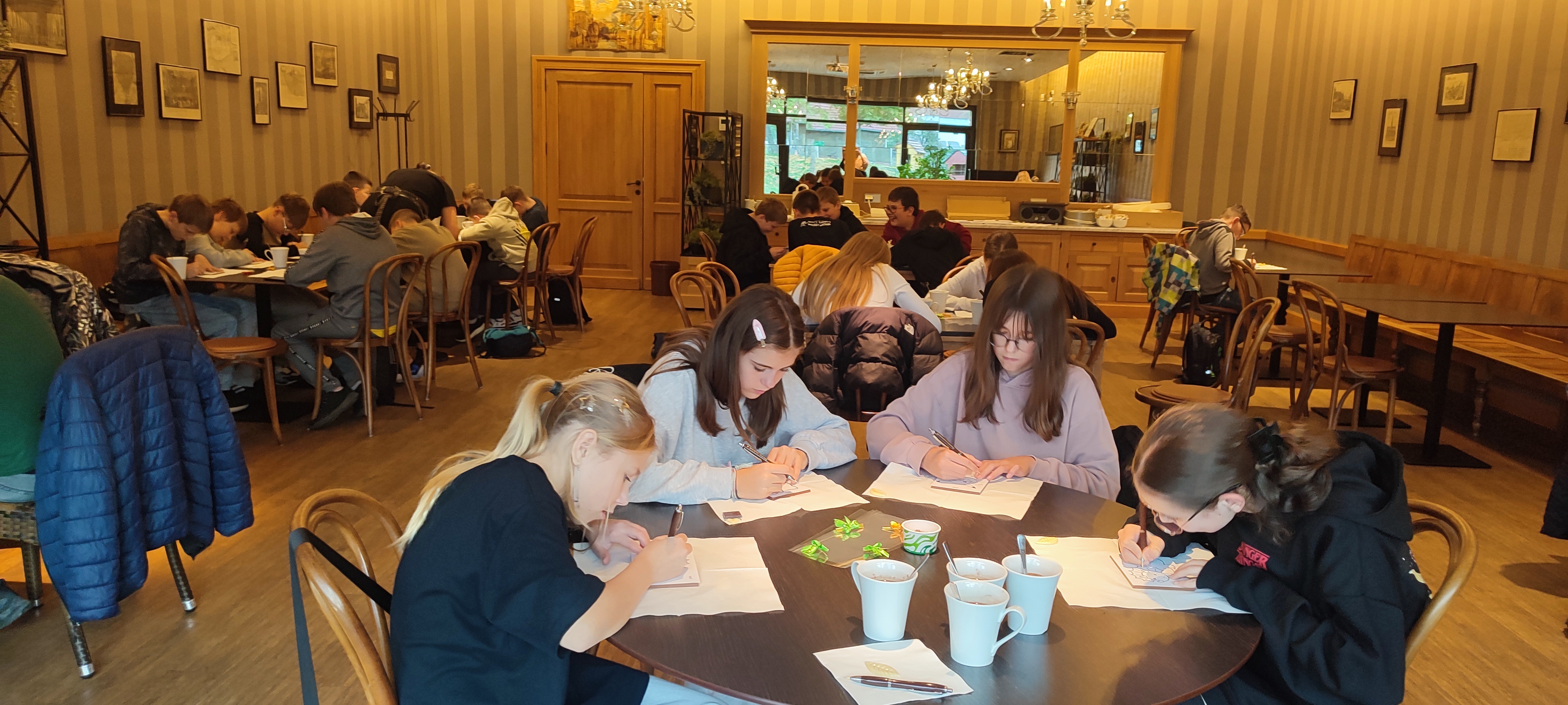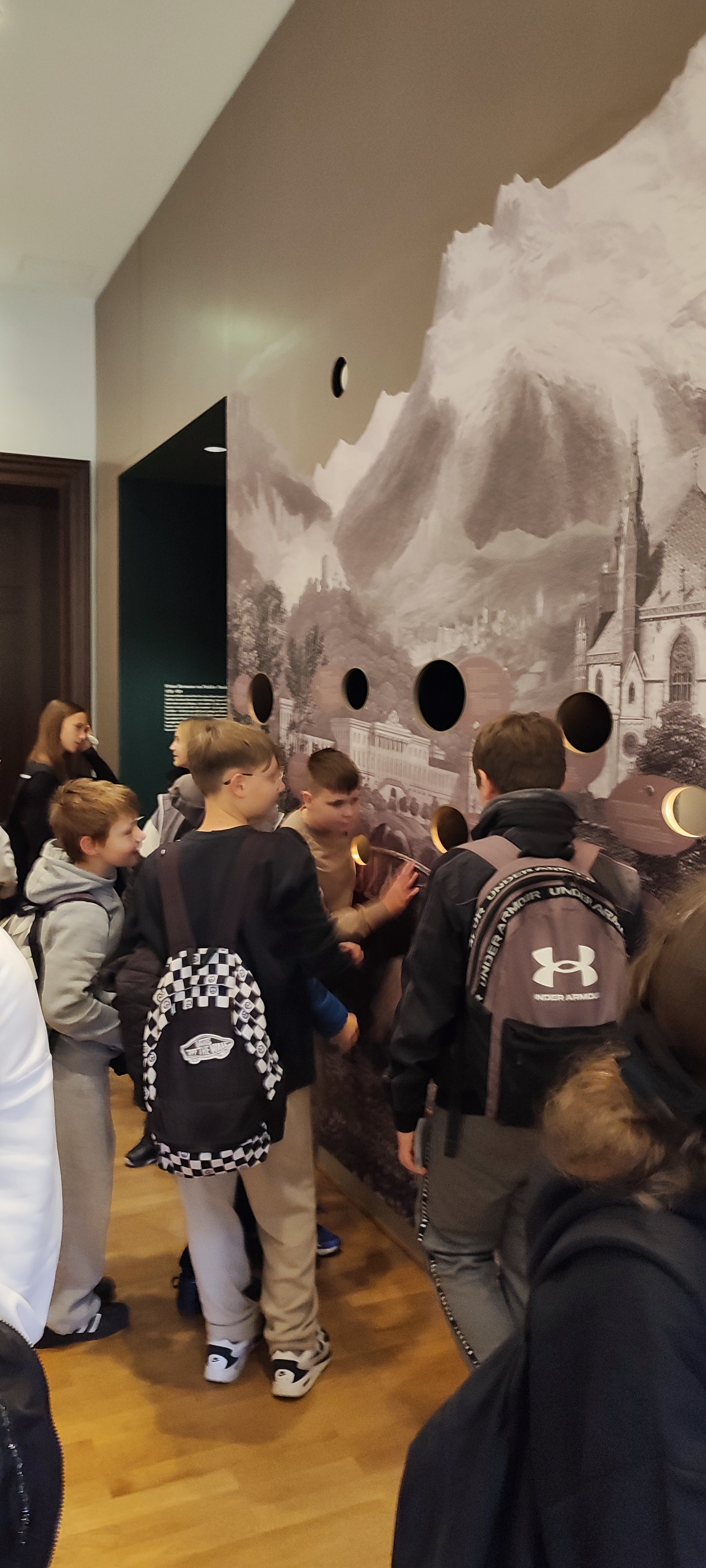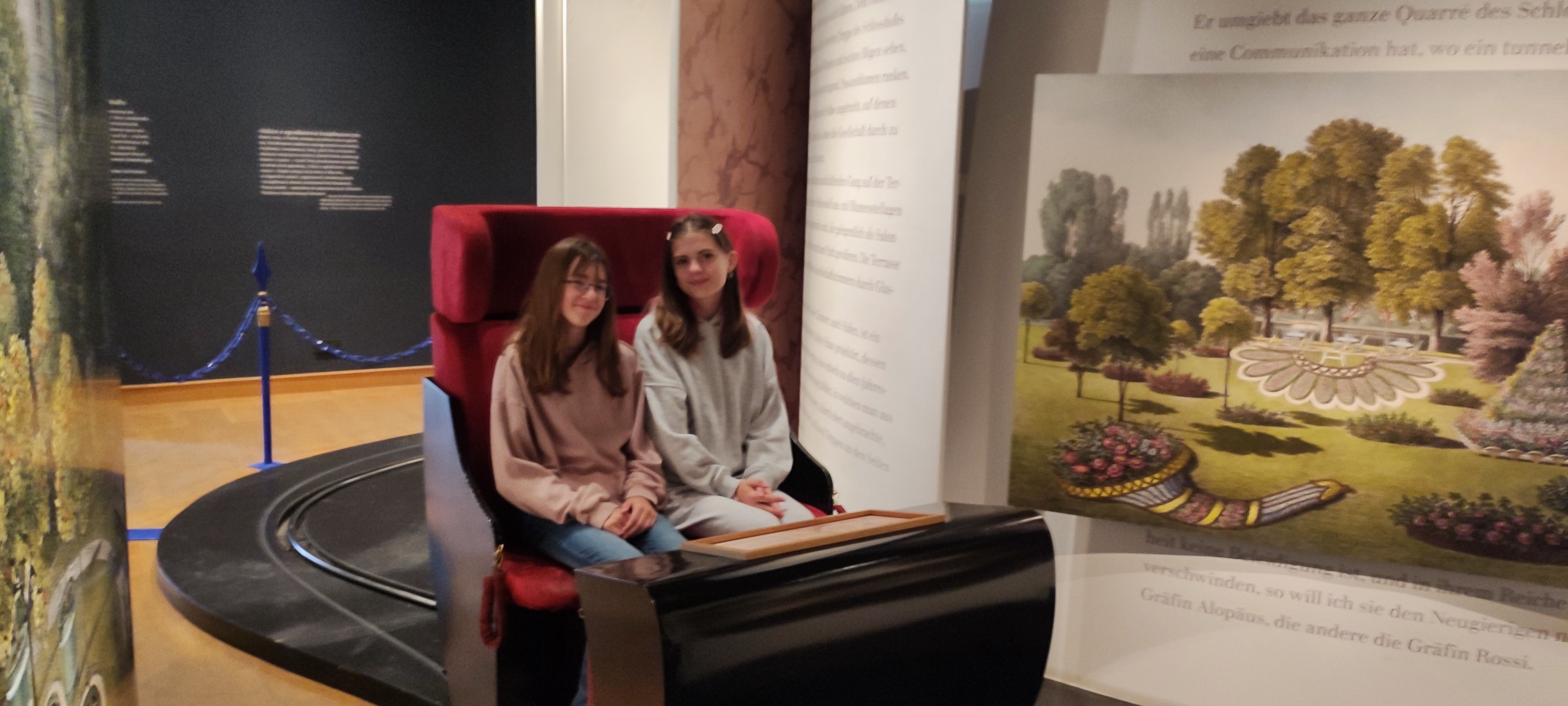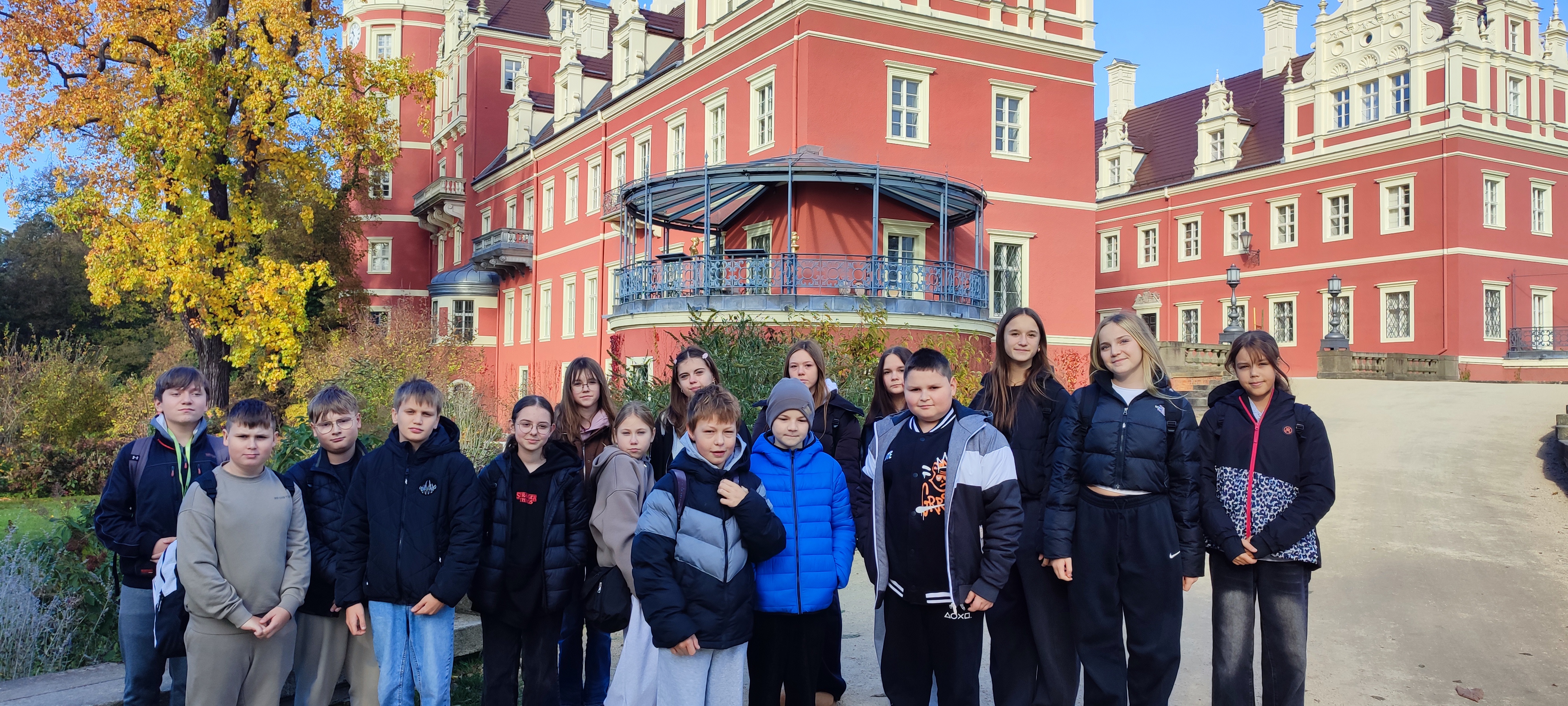 Pierwszym punktem wyjazdu była wizyta w Pałacu Pücklera. Jest on zlokalizowany w Parku Mużakowskim, który nazywany jest ogrodowym dziełem sztuki, wpisanym na listę światowego dziedzictwa UNESCO. W Pałacu oglądaliśmy liczne wystawy, w jednej z sal, mogliśmy wygenerować list miłosny, a w innej- przejechać się multimedialną dorożką. Weszliśmy także się na wieżę, by podziwiać piękne widoki.