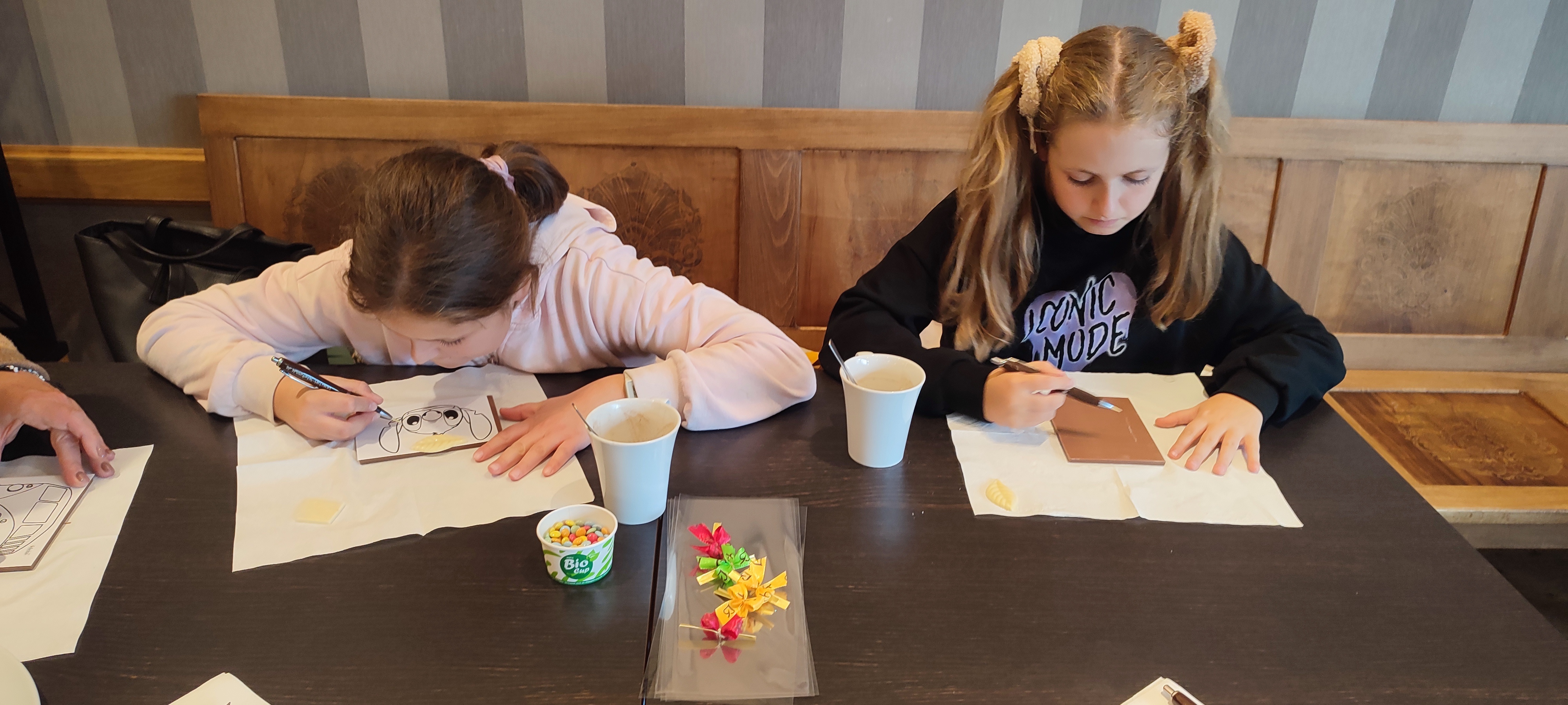 Ostatnim punktem wycieczki była Manufaktura Czekolady w Hornov. Tu obejrzeliśmy krótki film, a następnie ozdabialiśmy własne tabliczki czekolady. Nie obyło się także bez degustacji czekolady na gorąco, pralinek i innych słodkości.