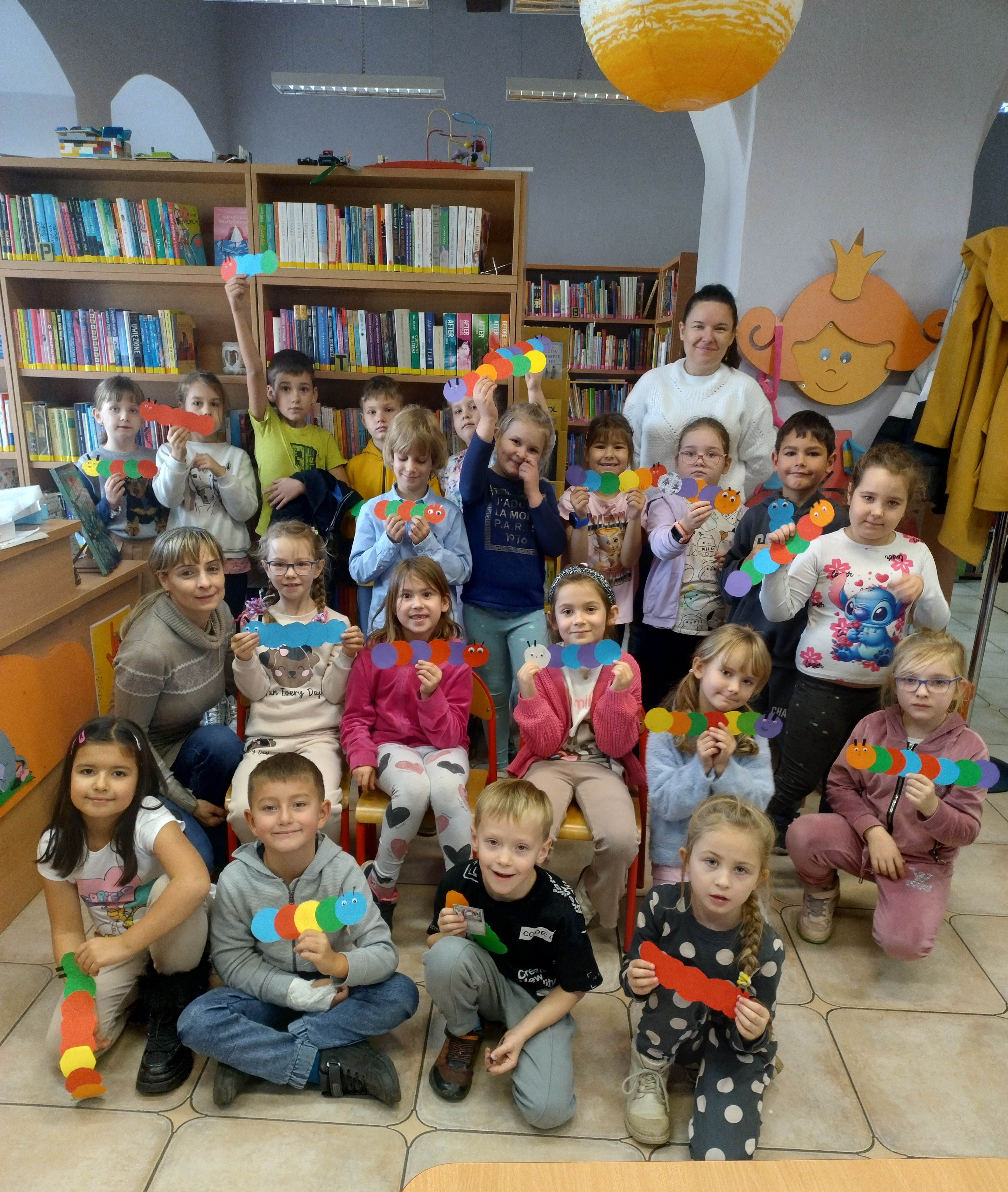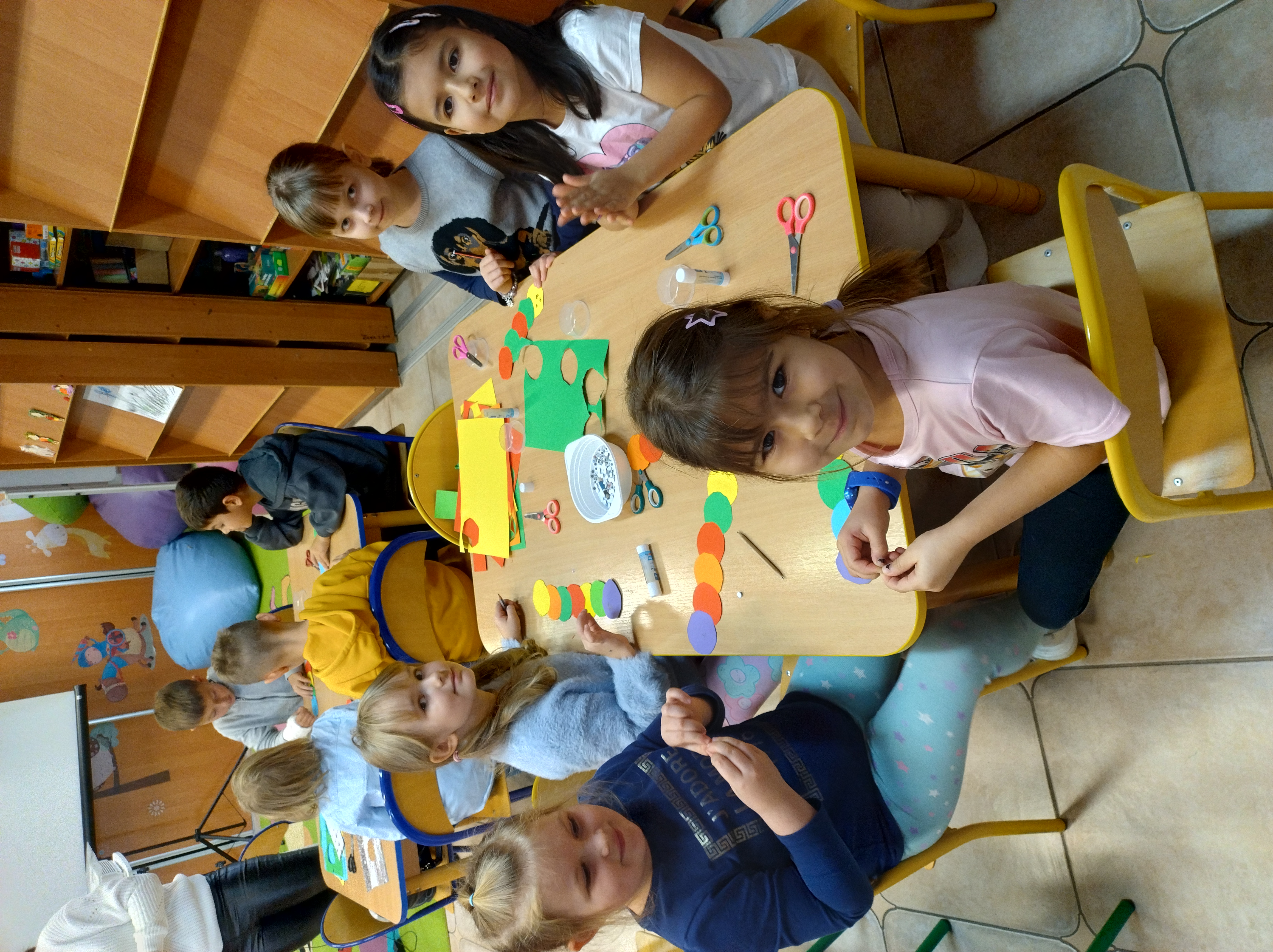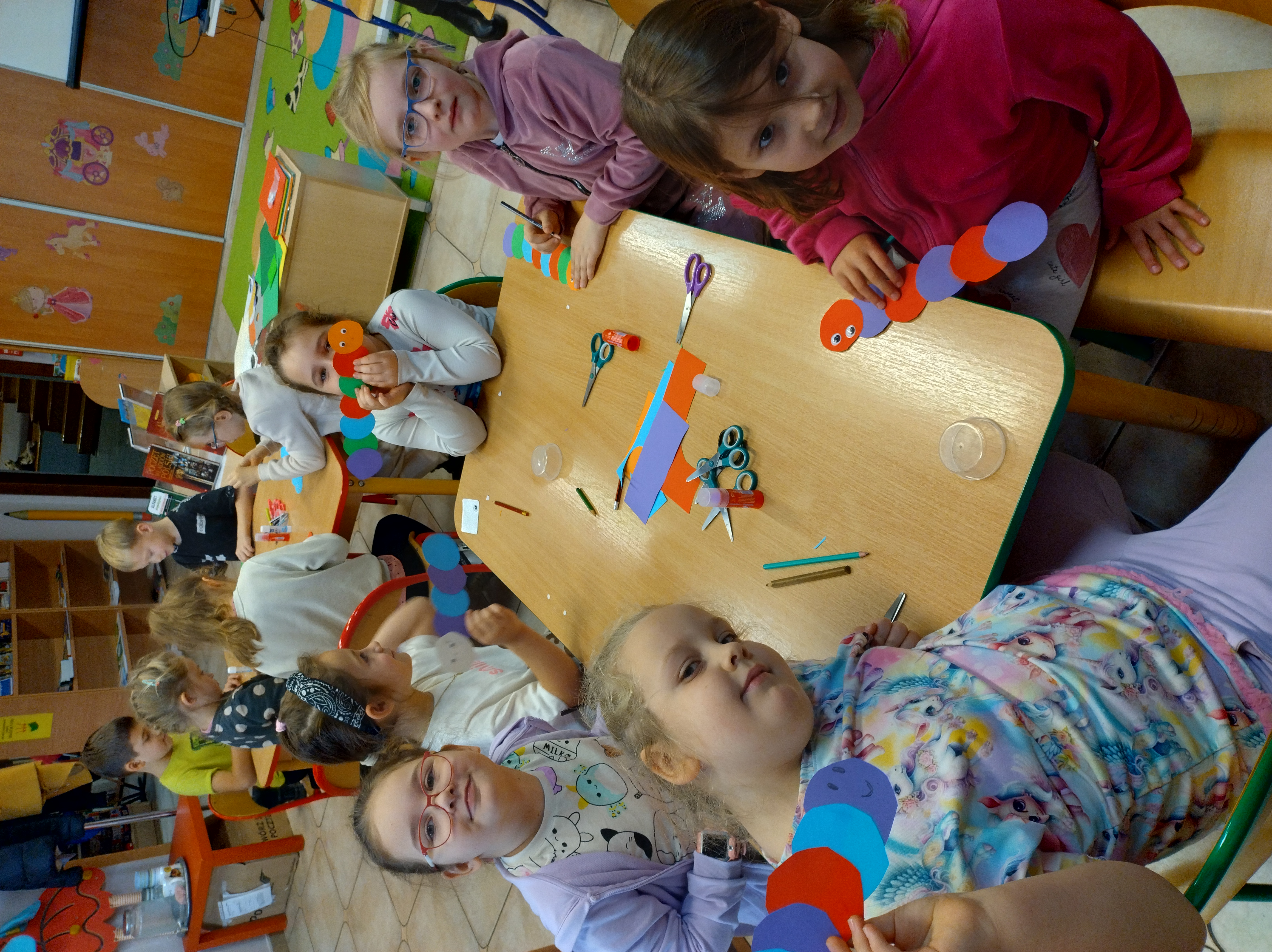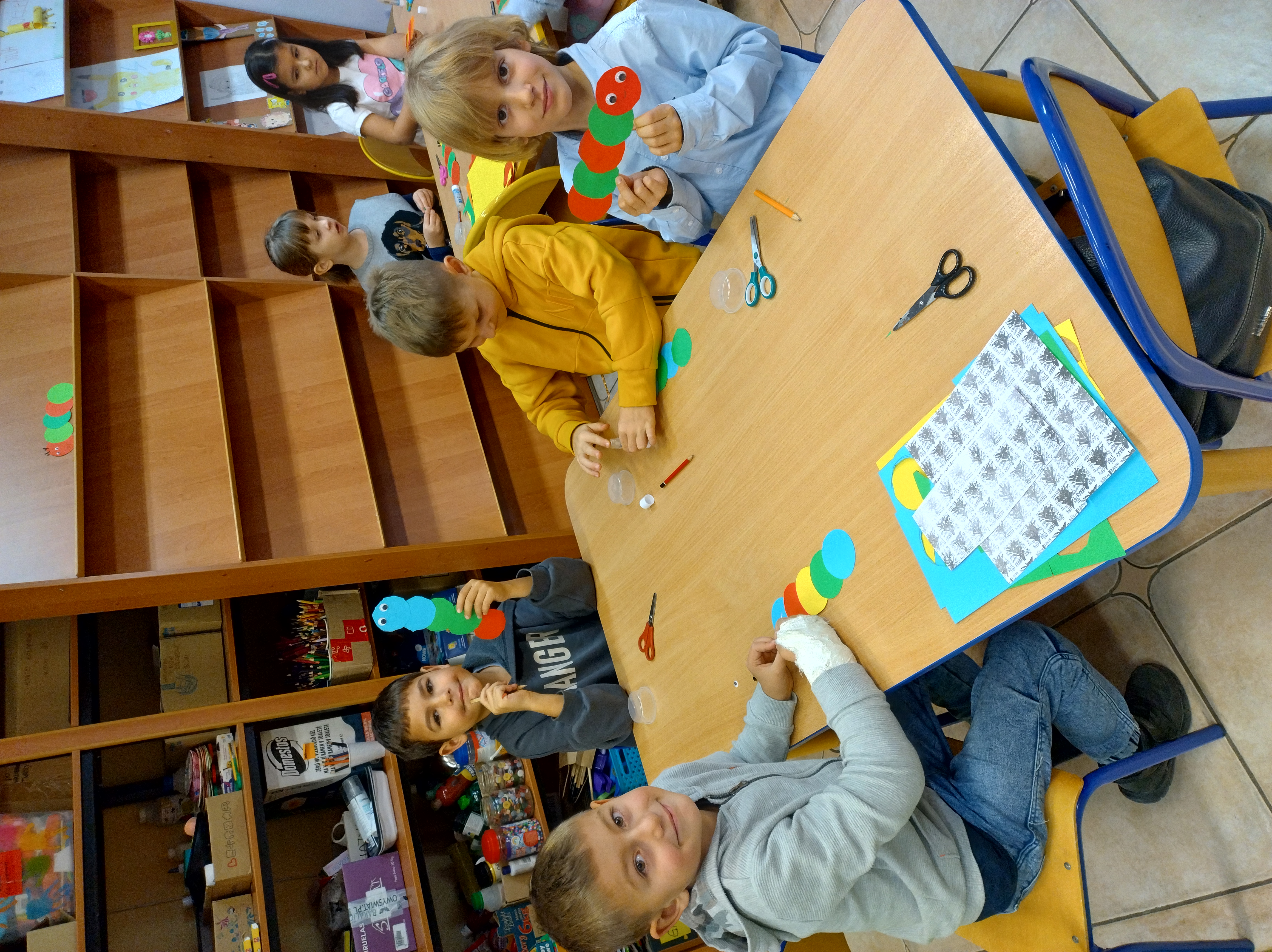 Na zakończenie warsztatów dzieci wykonały kolorowe zakładki do książek w kształcie „gąsienic”, które zabrały ze sobą na pamiątkę.