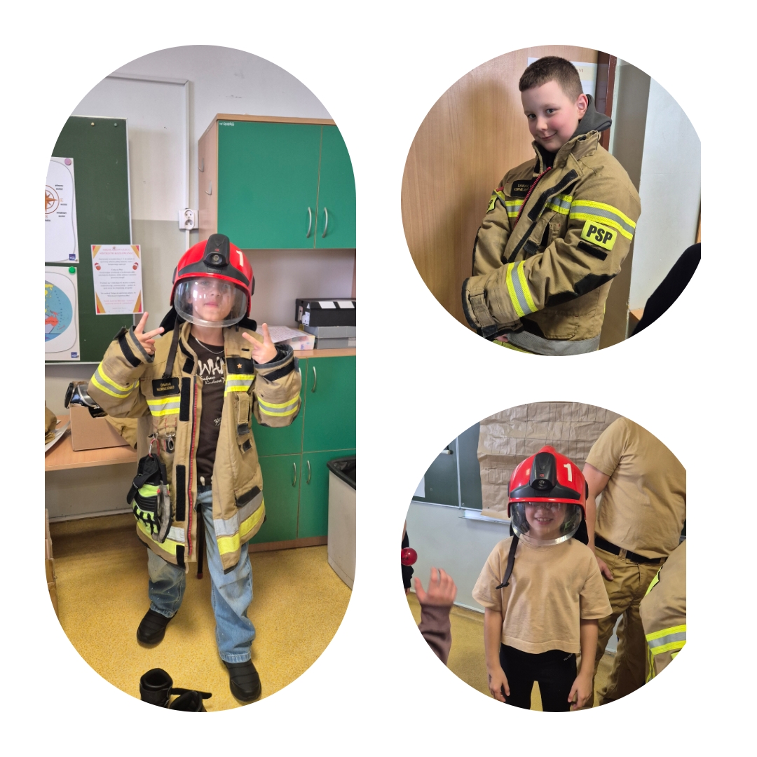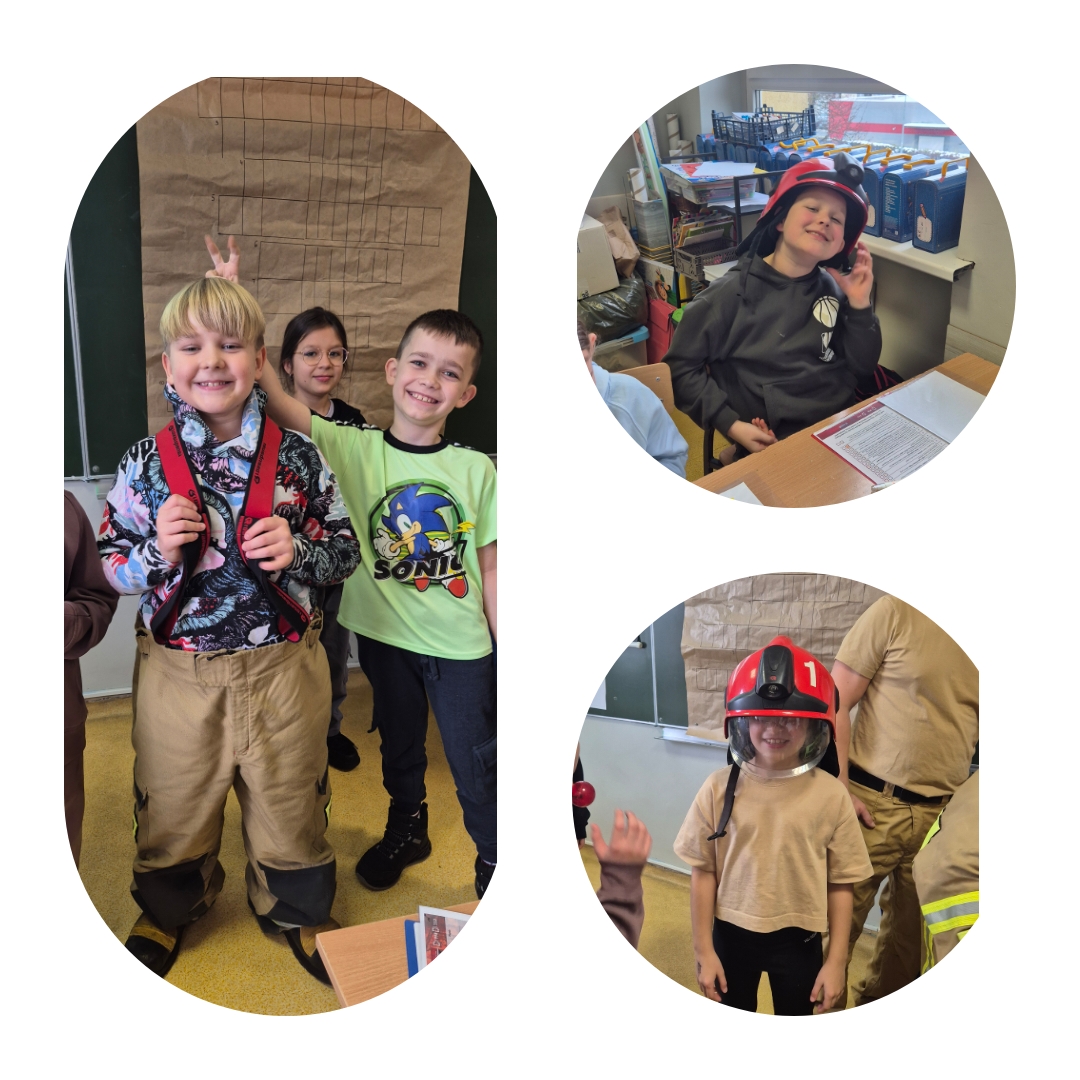 Wypełniliśmy Domowy Test Bezpieczeństwa Pożarowego oraz uzupełniliśmy krzyżówkę hasłami związanymi z zawodem strażaka. Dodatkowo mogliśmy z bliska obejrzeć i przymierzyć ubranie specjalne do akcji ratowniczych.