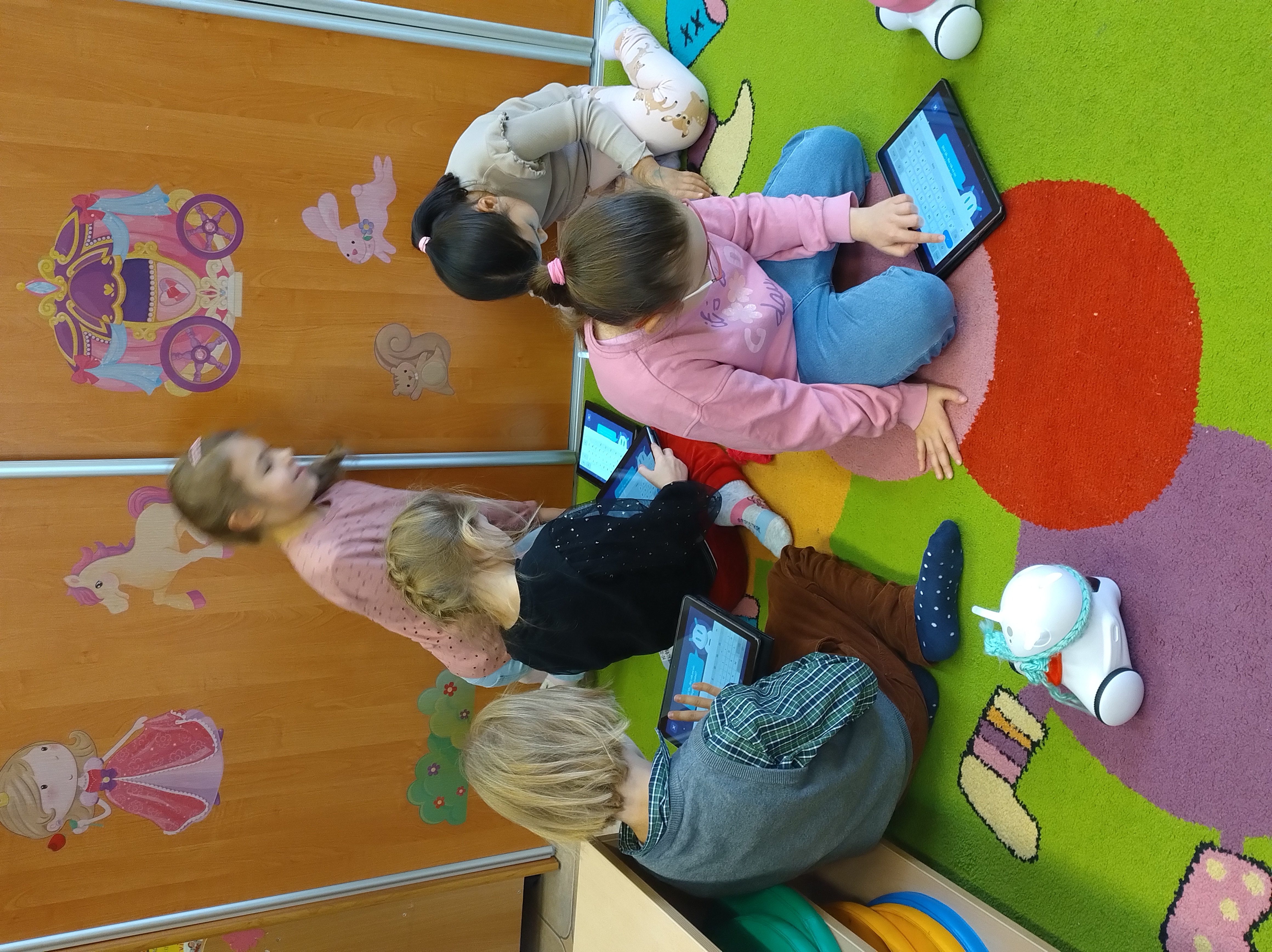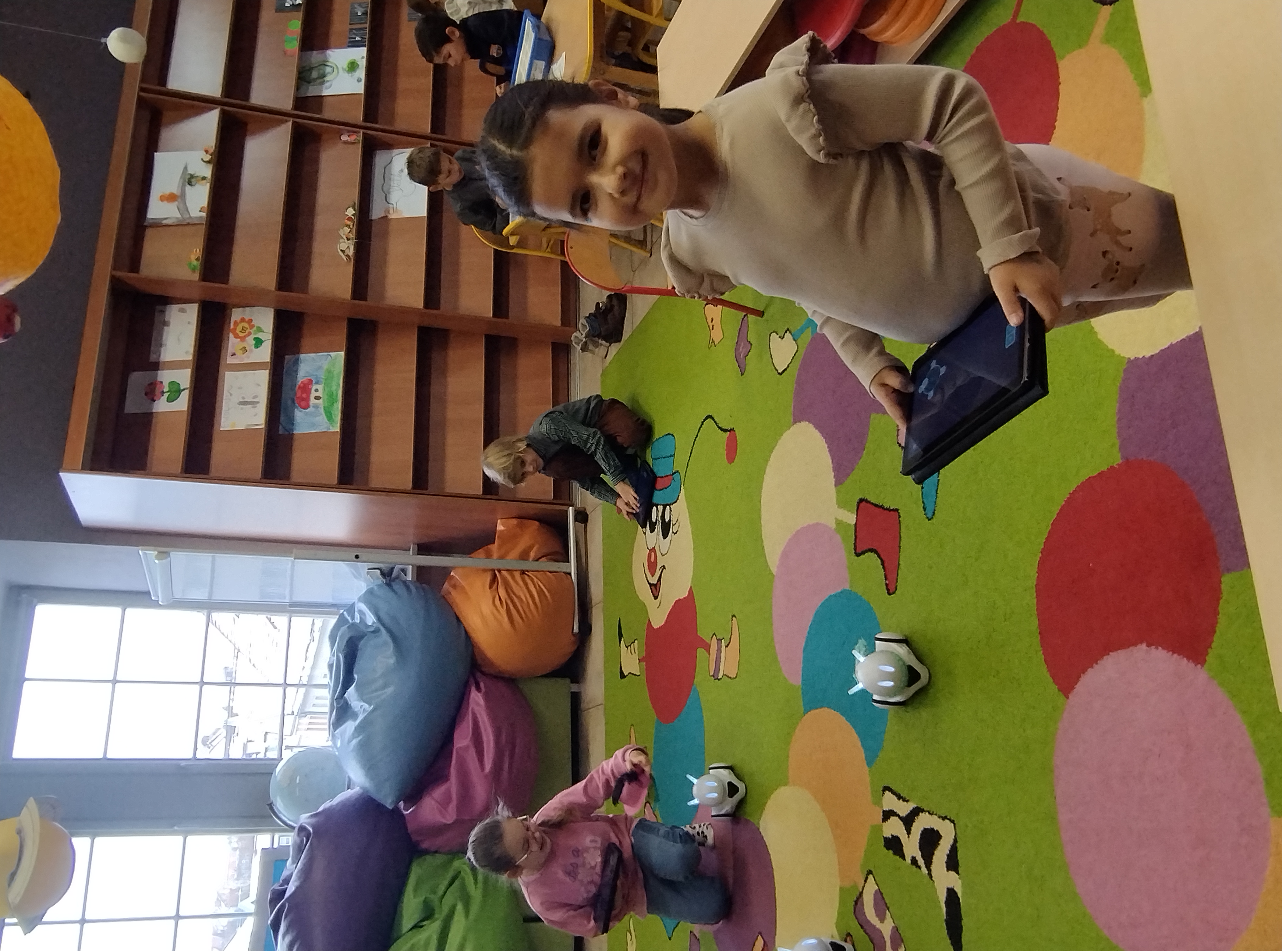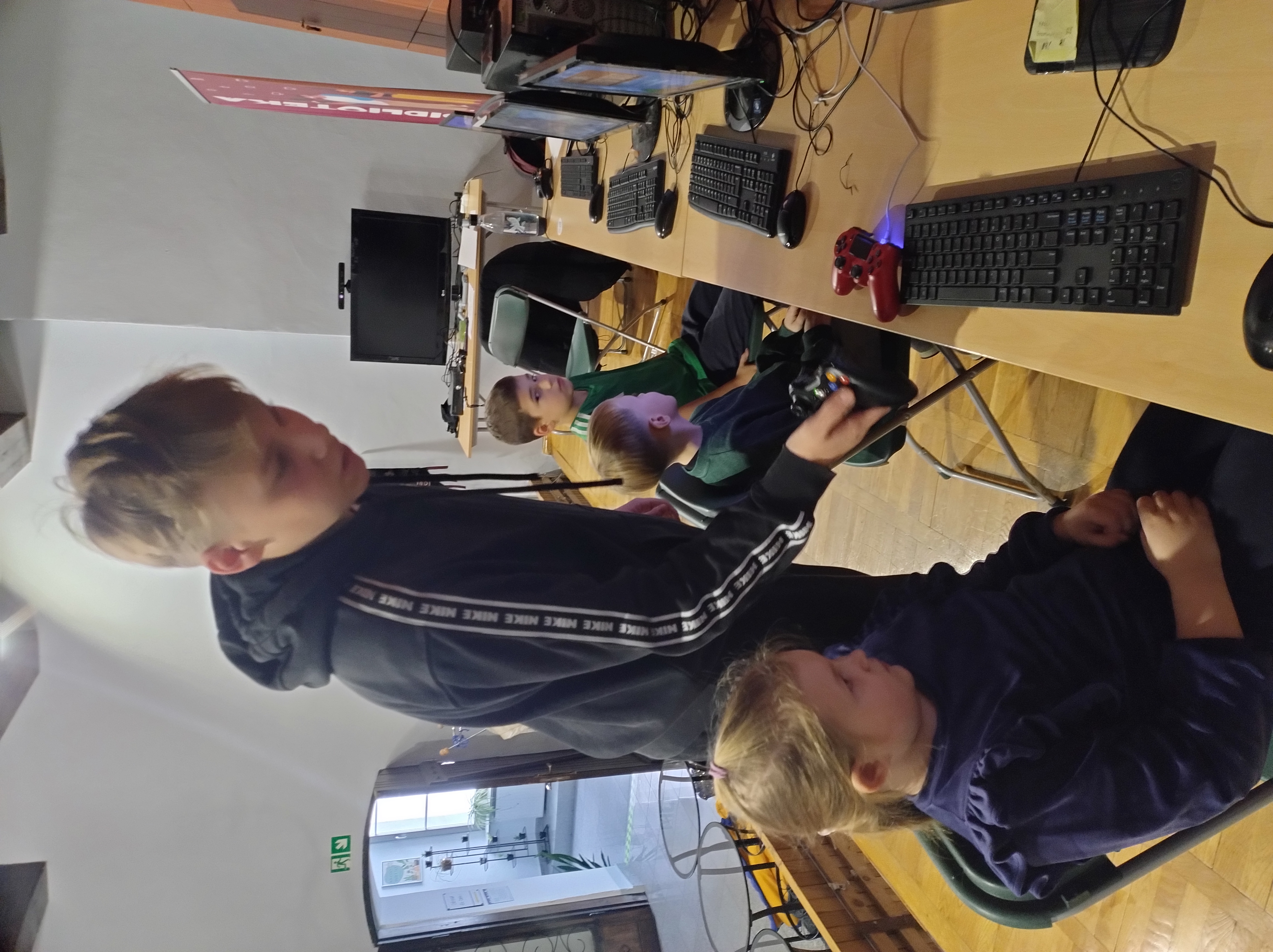 Roboty Phony też okazały się ogromną atrakcją — mogliśmy nimi sterować, a także obserwować, jak reagują na zaprogramowane polecenia. Dzięki temu nie tylko świetnie się bawiliśmy, ale również rozwijaliśmy logiczne myślenie, wyobraźnię i umiejętność pracy zespołowej. Mieliśmy też okazję pograć na konsoli PlayStation 5 z użyciem gogli VR i kontrolerów ruchu.
