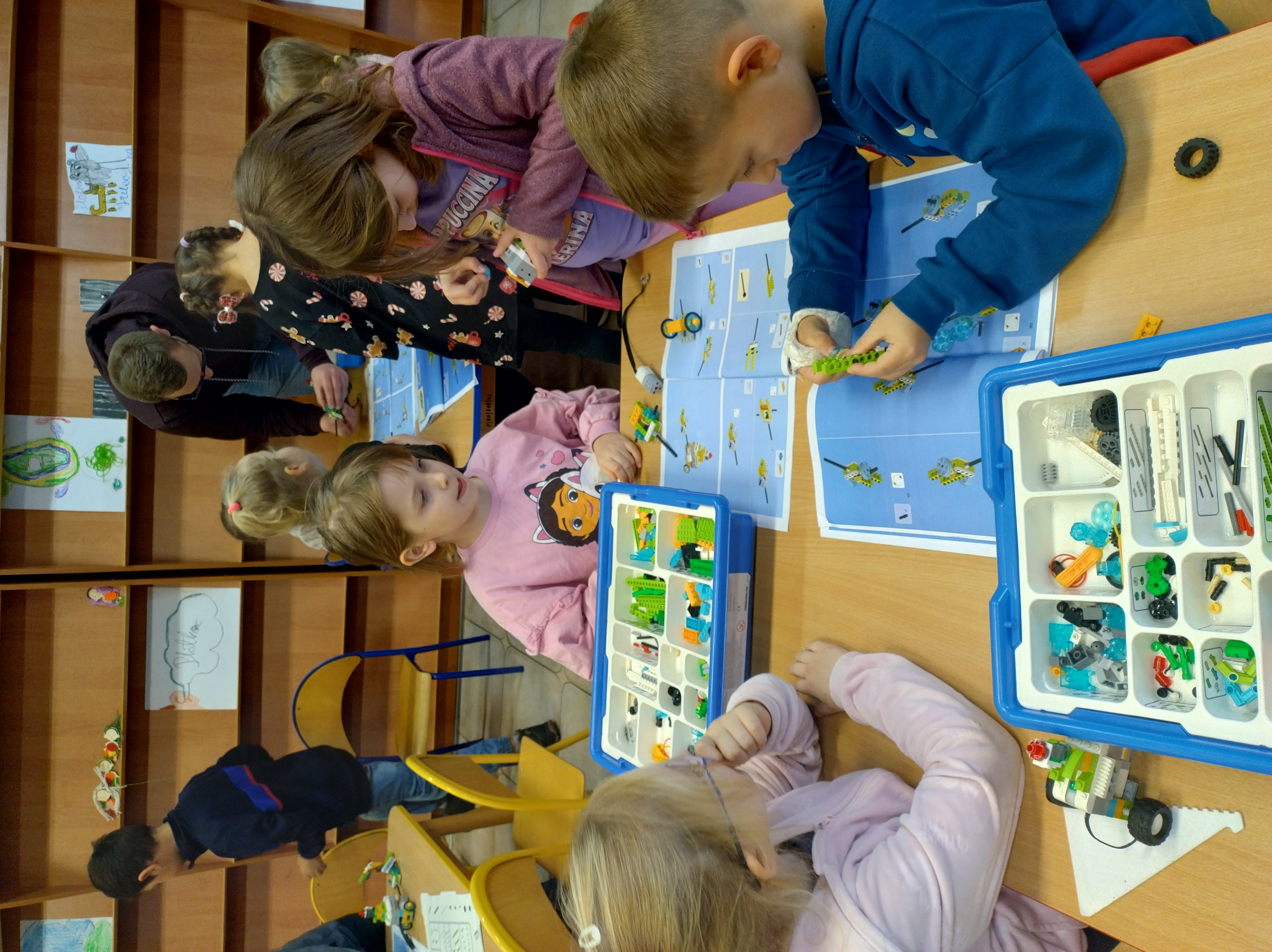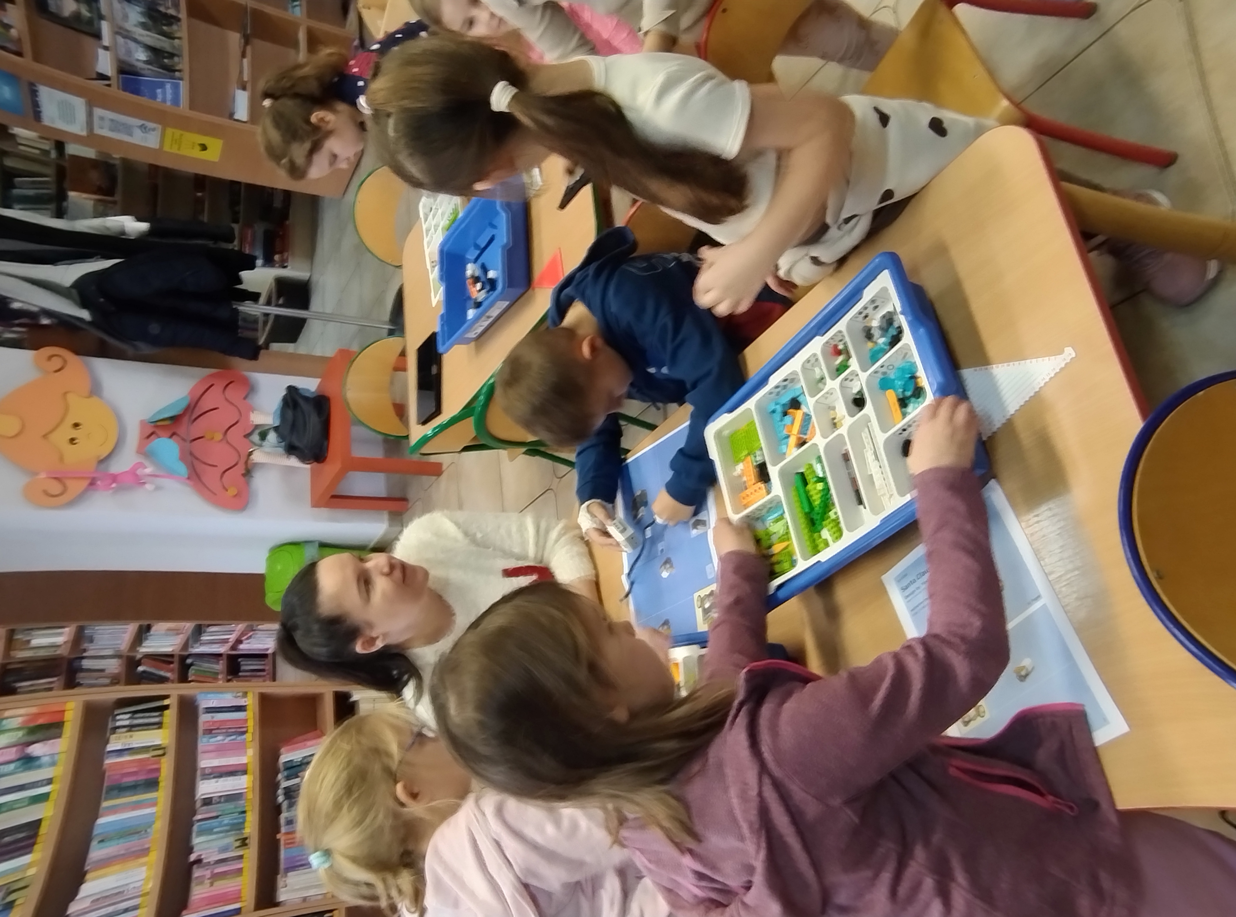 Na początku zostaliśmy serdecznie powitani przez informatyka, pana Jacka oraz panią Anetę z działu dla dzieci i młodzieży, którzy następnie przeprowadzili zajęcia praktyczne z robotyki i programowania. Wszyscy z dużym zainteresowaniem budowaliśmy konstrukcję „Zaprzęgu Mikołaja” z klocków LEGO, a następnie uczyliśmy się, jak zaprogramować je tak, aby wykonywały określone ruchy i działania.