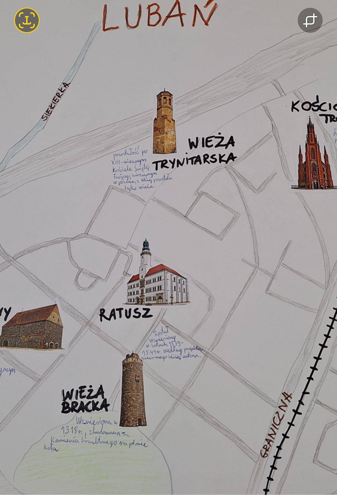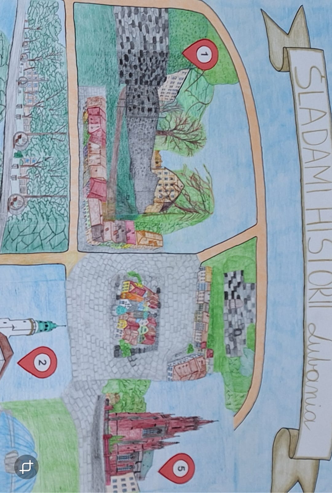 W ramach drugiego etapu projektu uczestnicy przygotowywali mapy historyczne swojej okolicy, prezentujące pięć miejsc ważnych dla dziejów regionu, takich jak zabytki, pomniki czy miejsca pamięci. Prace zostały uzupełnione o krótkie opisy i ilustracje, a uczniowie wykazali się dużą kreatywnością oraz starannością wykonania.